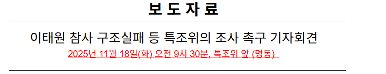 - 제목 : 이태원 참사 구조실패에 대한 특조위의 엄정 조사 촉구 기자회견